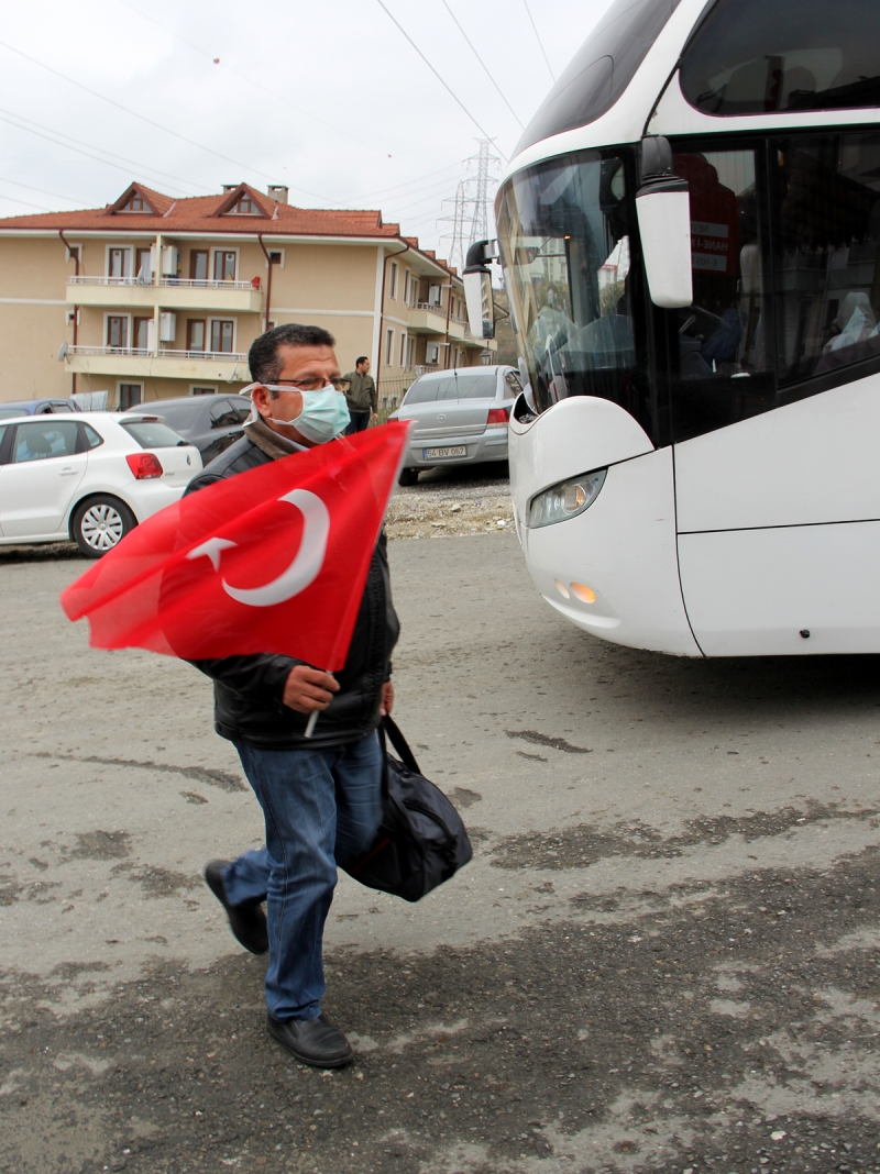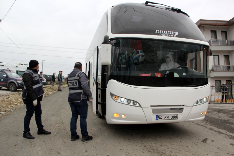 Ro-Ro kuru yük gemisiyle Ukrayna'dan Karasu Limanı'na getirilen 88 tır şoförü, burada yapılan ilk sağlık kontrolünün ardından otobüslerle önceden boşaltılan Serdivan ilçesindeki Arif Nihat Asya Öğrenci Yurdu'na götürüldü.