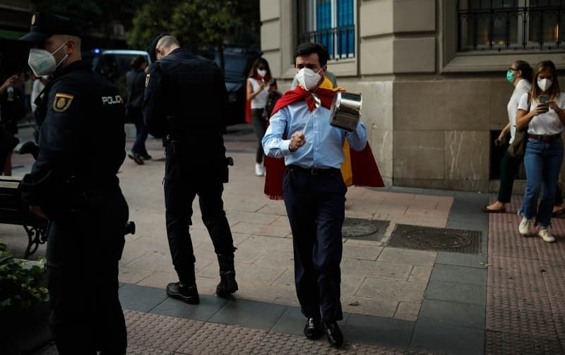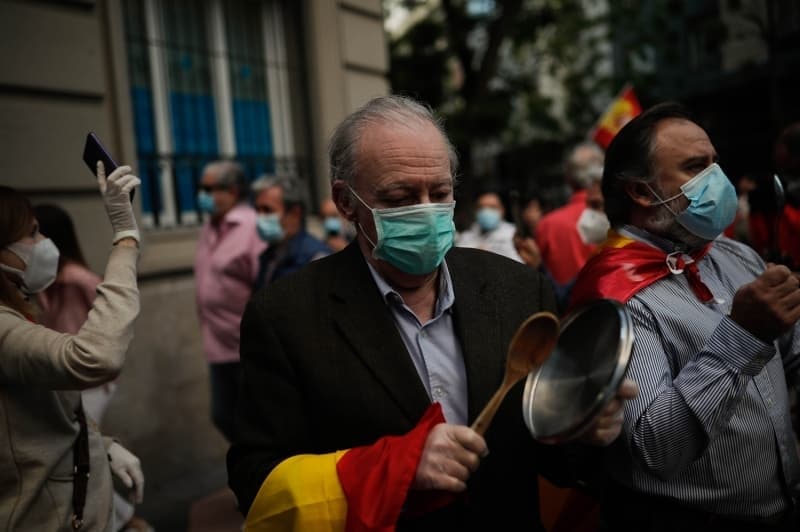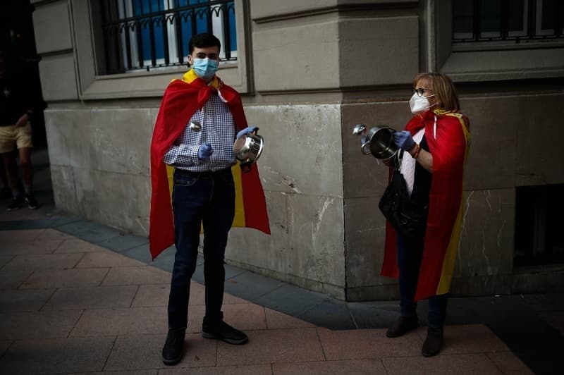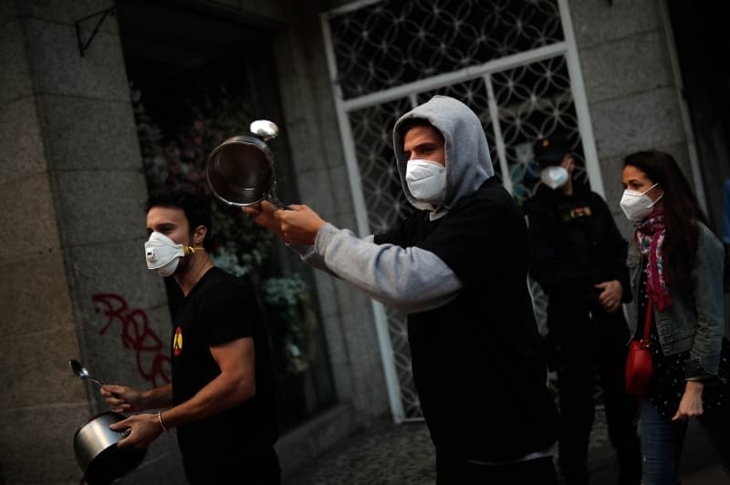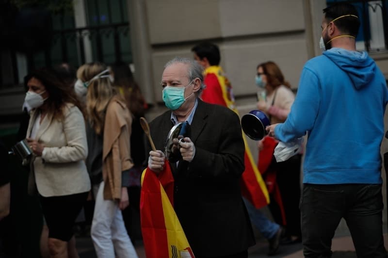 Ülke genelinde yerel saat ile 20.00'da sağlık çalışanlarını desteklemek için yapılan alkış eyleminden sonra 21.00'da bazı yerlerde hükümeti protesto etmek için balkonlara çıkan İspanyollar tencere ve tavalara vurarak çıkardıkları sesle tepkilerini duyurmaya çalışıyorlardı.