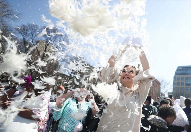 Her sene nisan ayında yapılan 'Uluslararası Yastık Savaşı Günü' bu sene de New York'ta renkli görüntüler ortaya çıkardı.