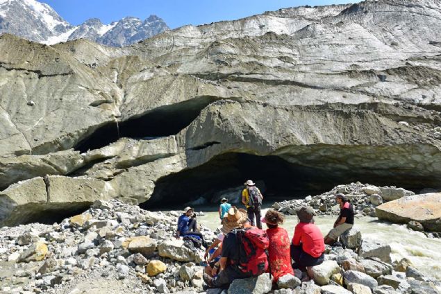 Sıcağa ve zorluklara aldırmadan Enguri Vadisi içinden Şhara buzuluna yürüyüş gerçekleştiren turistler, doğa ile uyum içinde yaşayan yerel Svan halkının binalarını yakından görme fırsatı buluyor.