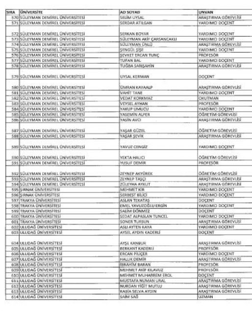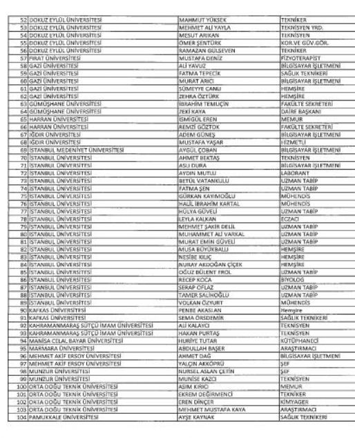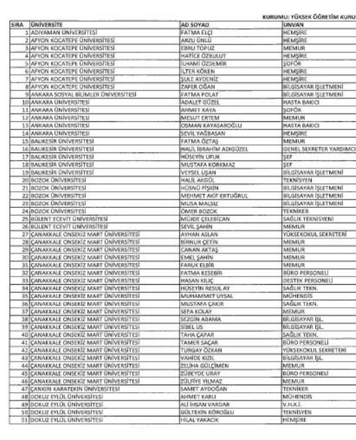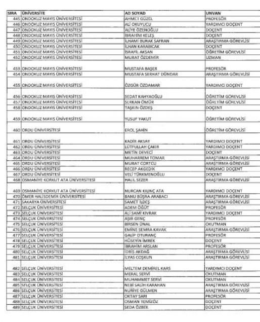 Üniversiteden ihraç edilen akademisyen ve idari personel listesi