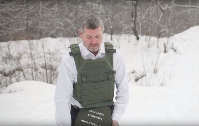 Ukrayna merkezli Ukrainian Armor şirketinin CEO'su Vyacheslav Nalyvaiko, geliştirdikleri yeni çelik yeleği denemek için uçuk bir fikirle kameraların karşısına geçti.