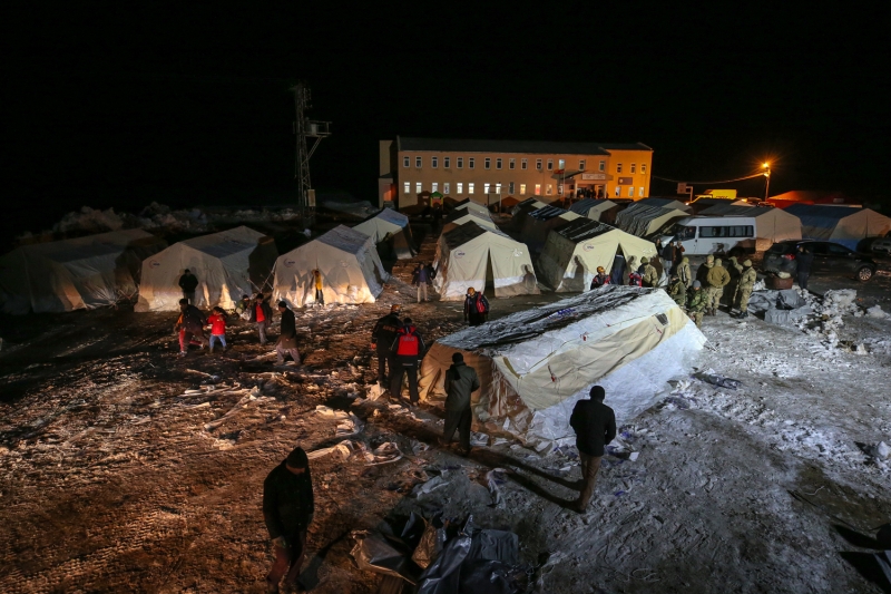 Merkez üssü İran'ın Hoy kentinde sabah meydana gelen 5,9 büyüklüğündeki depremin en çok hasar verdiği Van'ın Başkale ilçesinin Özpınar Mahallesi'nde AFAD ve Kızılay ekiplerince kurulan çadırlara depremzedeler yerleştirilmeye başlandı.