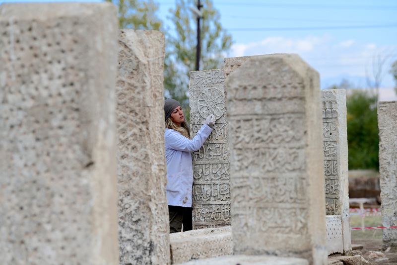 'Buradaki çalışmalar bu yıl Cumhurbaşkanlığı himayelerine dahil edildi. Valiliğimiz destek veriyor. Mezarların şahide ve sanduka kısımları bulunuyor. Uzman hocalarımız, akademisyenlerimiz, yüksek lisans, doktora ve lisans öğrencilerimizden oluşan ekip toprak altında kalan şahide ve sandukaları ortaya çıkarıyor. Kırılan ve liken tutan üzeri süslemeli mezar taşları restore ediyor. Mezar taşlarının üzerinde geometrik bezemeler, çeşitli bitki motifleri, süslemeler var. Vefat edenin bilgileri yazılı. Bazı taşlarda beyitler, hadisler, Kur'an-ı Kerim'den ayetler ve dualar da var. Bu dönemsel olarak farklılıklar gösteriyor. Akademisyenlerimiz bu yazıları, süslemeleri inceliyor. Buradaki çalışmalar bilimsel makalelere konu oluyor. Yapılan çalışmalar çok kıymetli. Adeta toprak altında kalan bir tarih gün yüzüne çıkarılıyor.'