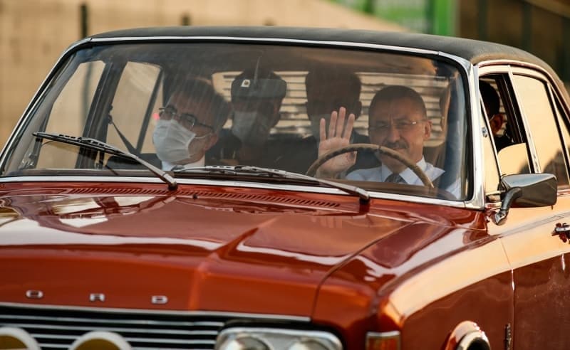 Burada klasik otomobil meraklısı bir vatandaşın 1960 model aracını kullanma teklifini geri çevirmeyen Oktay, şoför koltuğuna oturarak, şehir merkezine kadar klasik otomobili kullandı.