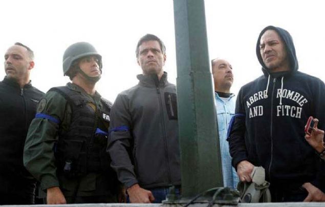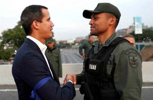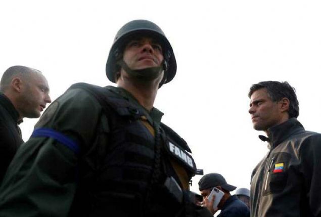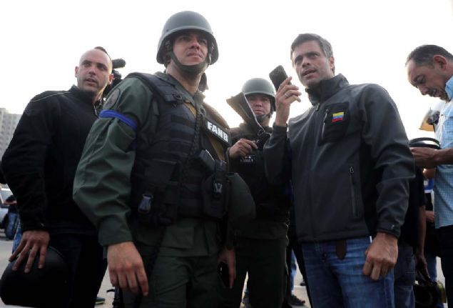 Üç dakikalık videoda, bir zırhlı aracın önünde, bir grup askeri ve ev hapsindeki muhalif aktivist Leopoldo Lopez'i yanına alan Guaido, askerleri anayasayı korumak üzere sokağa çıkmaya davet etti.