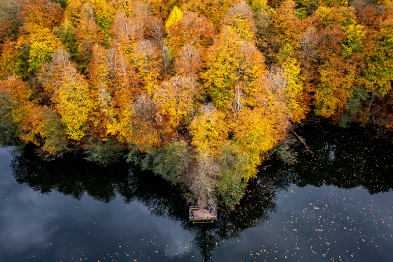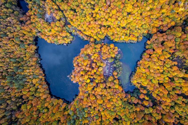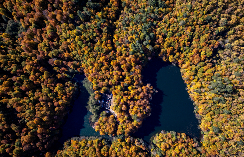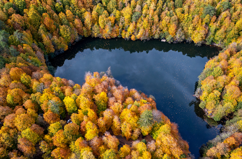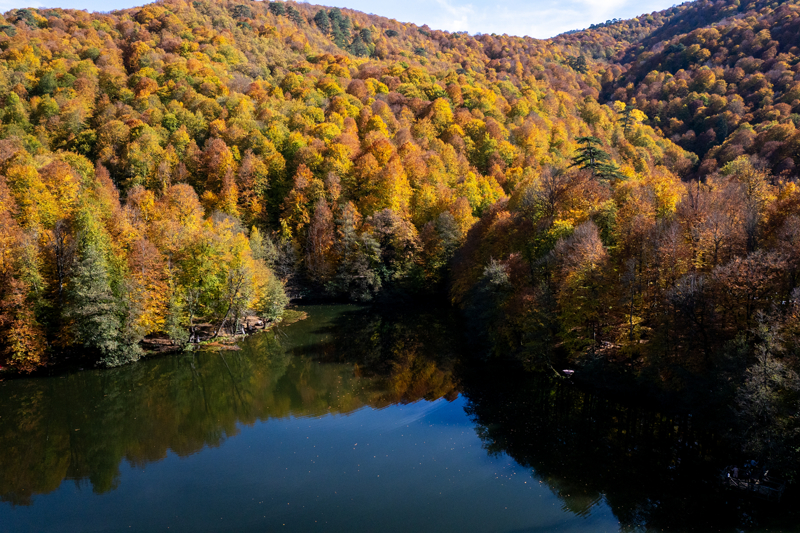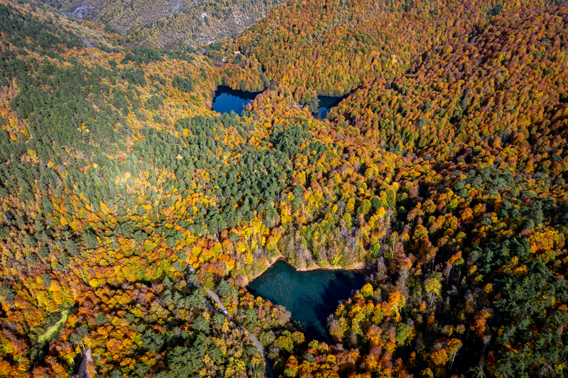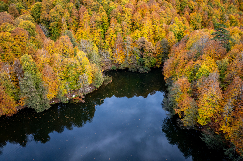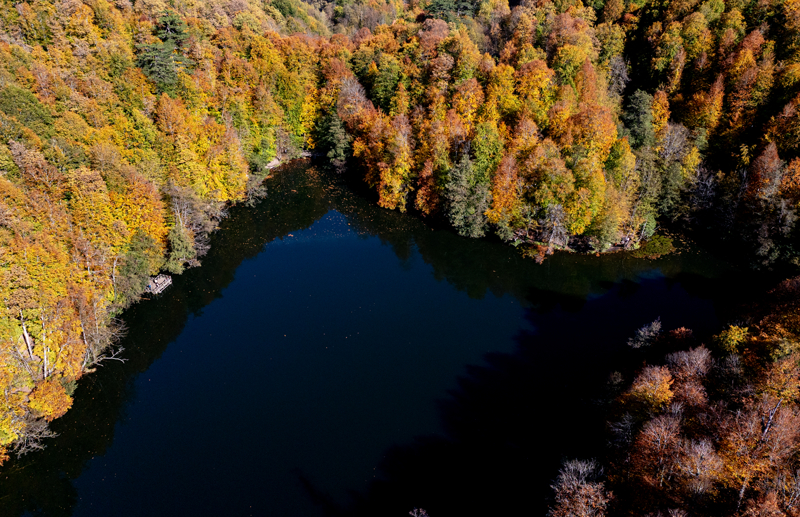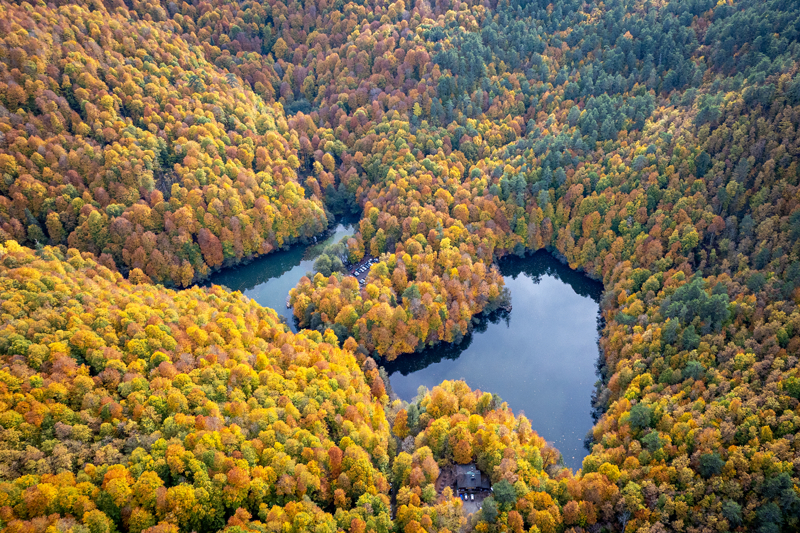 Bolu kent merkezine 42 kilometre uzaklıkta bulunan ve 1965 yılında milli park ilan edilen bölge, orman denizi olarak da adlandırılıyor. Her mevsim ziyaretçilerin ilgisini çeken Yedigöller'in meşe, kayın, gürgen, kızılağaç gibi ağaç türlerinden oluşan ormanları, sonbaharda kahverengi, sarı ve yeşilin farklı tonlarıyla göllerin çevresini ve dağları süslüyor. Yedigöller Milli Parkı, havadan görüntülendi.