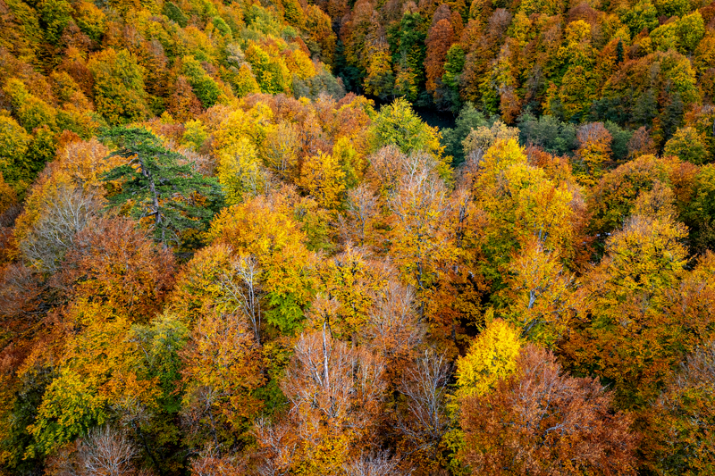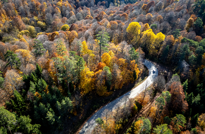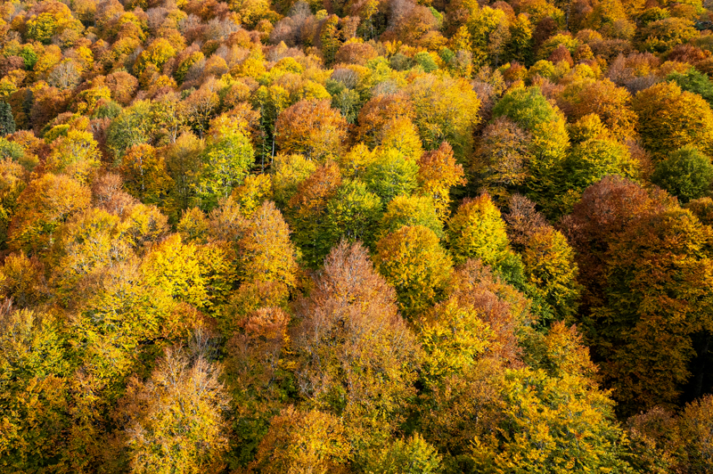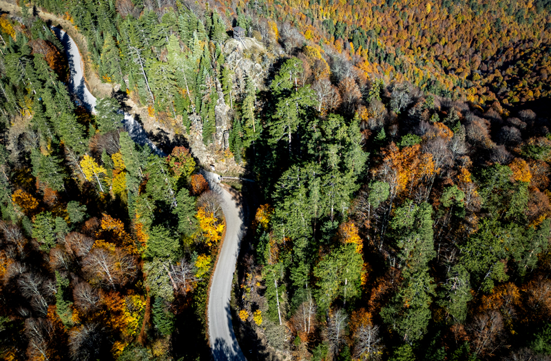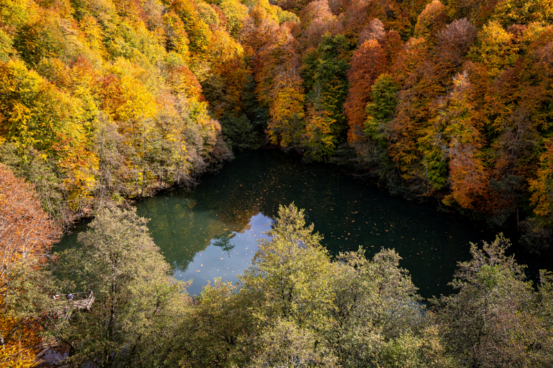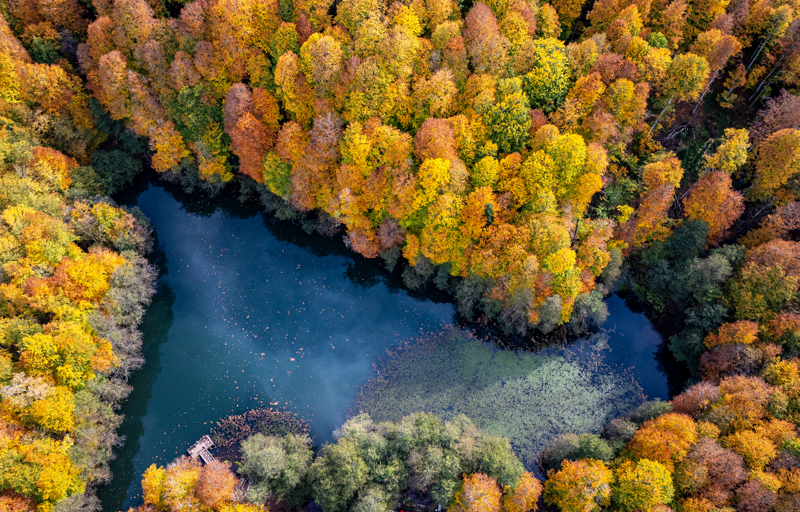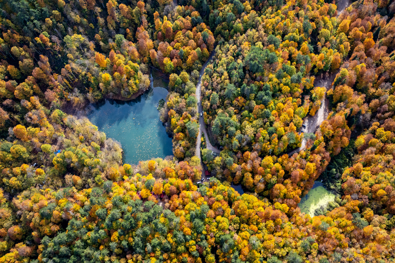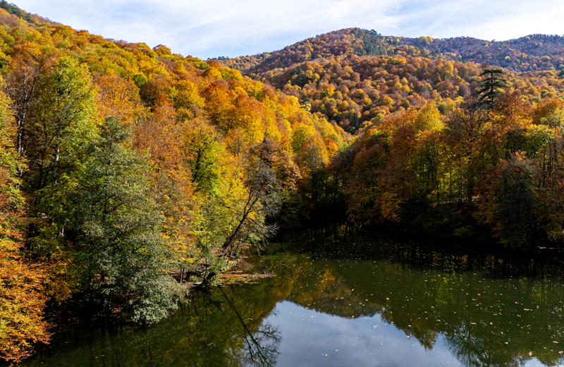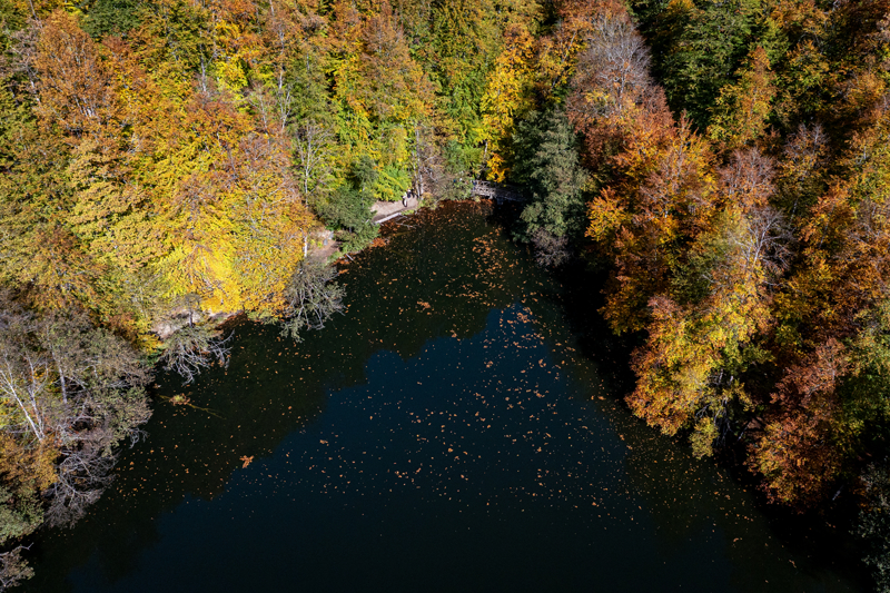 Bolu kent merkezine 42 kilometre uzaklıkta bulunan ve 1965 yılında milli park ilan edilen bölge, orman denizi olarak da adlandırılıyor. Her mevsim ziyaretçilerin ilgisini çeken Yedigöller'in meşe, kayın, gürgen, kızılağaç gibi ağaç türlerinden oluşan ormanları, sonbaharda kahverengi, sarı ve yeşilin farklı tonlarıyla göllerin çevresini ve dağları süslüyor. Yedigöller Milli Parkı, havadan görüntülendi.