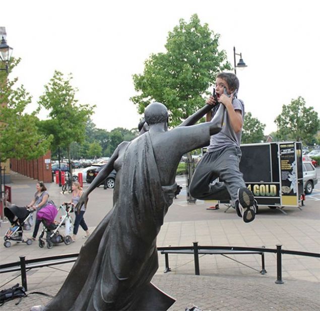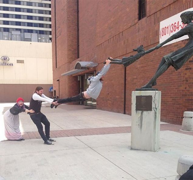 Heykellerin yanına gelerek ilginç pozlar veren yaratıcı insanların keyifli paylaşımları gören herkesin ilgisini çekiyor