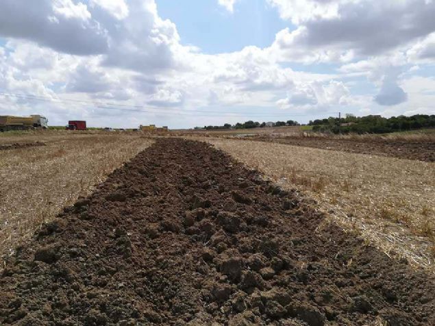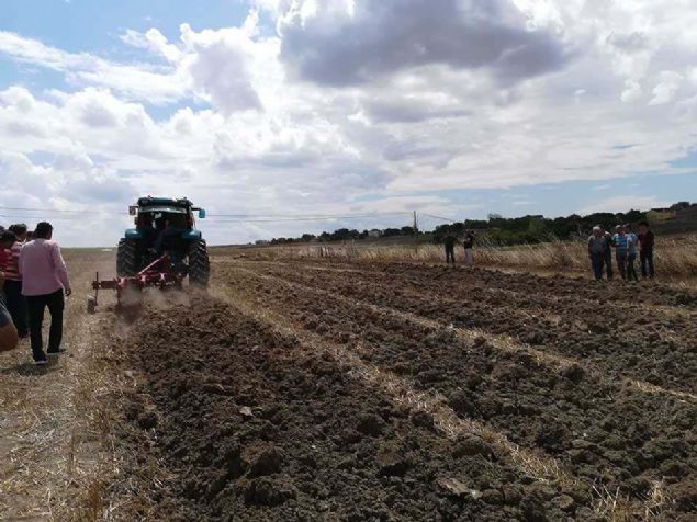 Arkasından elektrikli traktörü boş kullanacakken bölgede bizi izleyen çiftçinin 'Traktör arkta belli olur, şu ilk sürdüğünüz yerin arkından bir daha sürün.' mesajına uyup sürdüğümüz yeri geri dönerek elektrikli traktörümüzün sağ tekerleğini ark içerisine koyarak ikinci bir sıra sürümünü daha yaptık.