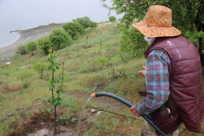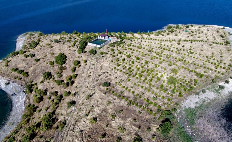 Yerleştiği adaya 4 bin fidan diken, yaptığı sulama havuzu ile onları büyütüp adayı ayrı bir görüntüye kavuşturan Abay, koronavirüs tedbirleri kapsamında 65 yaş üstü kısıtlamasına takıldığı için ilçedeki evine dönmek zorunda kaldı.
