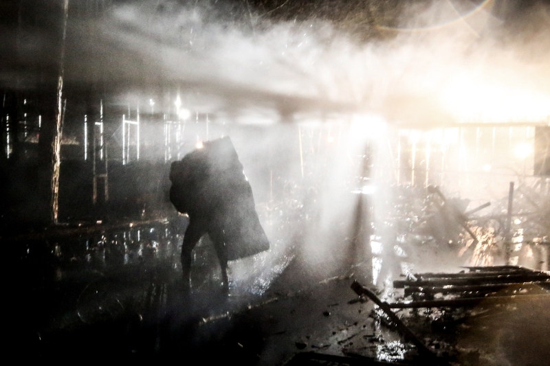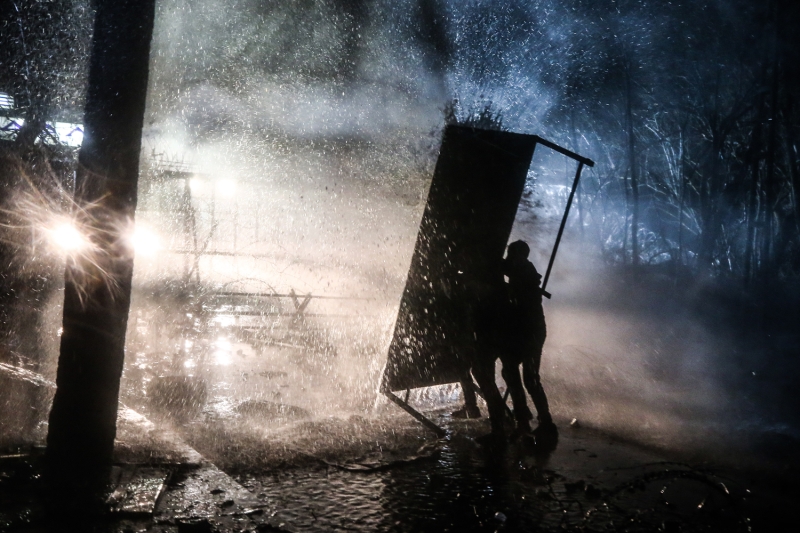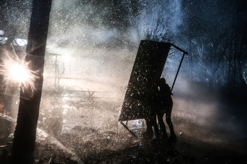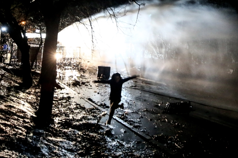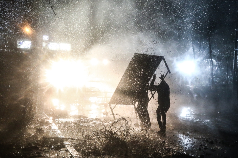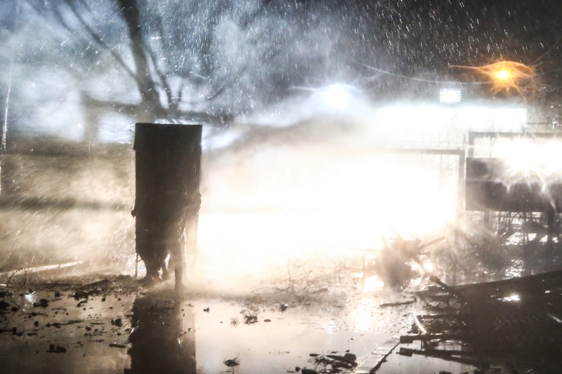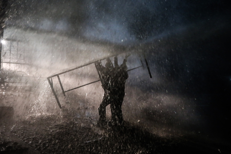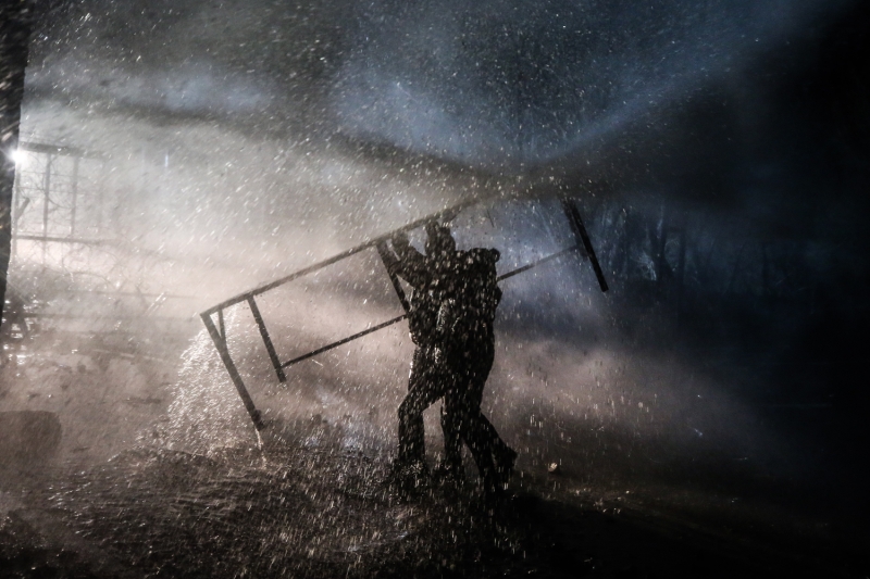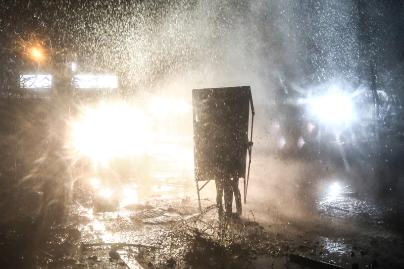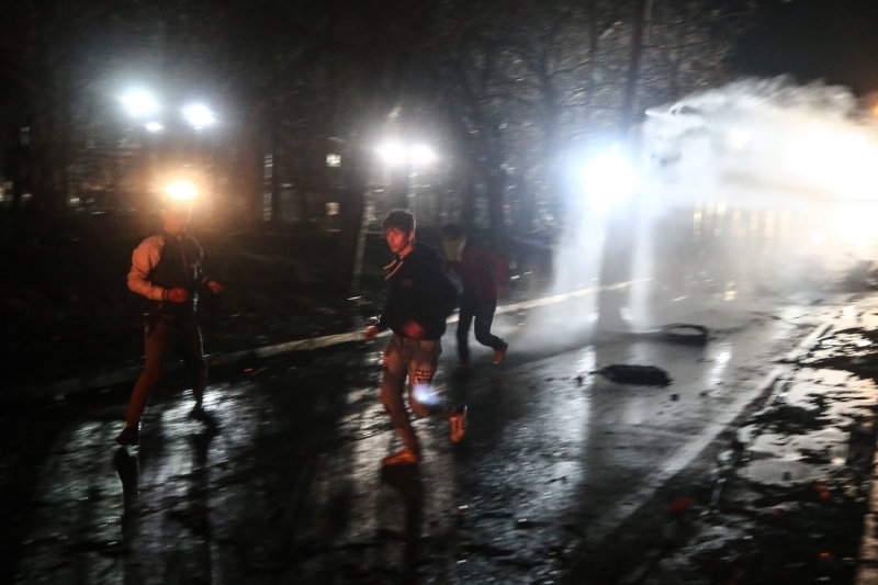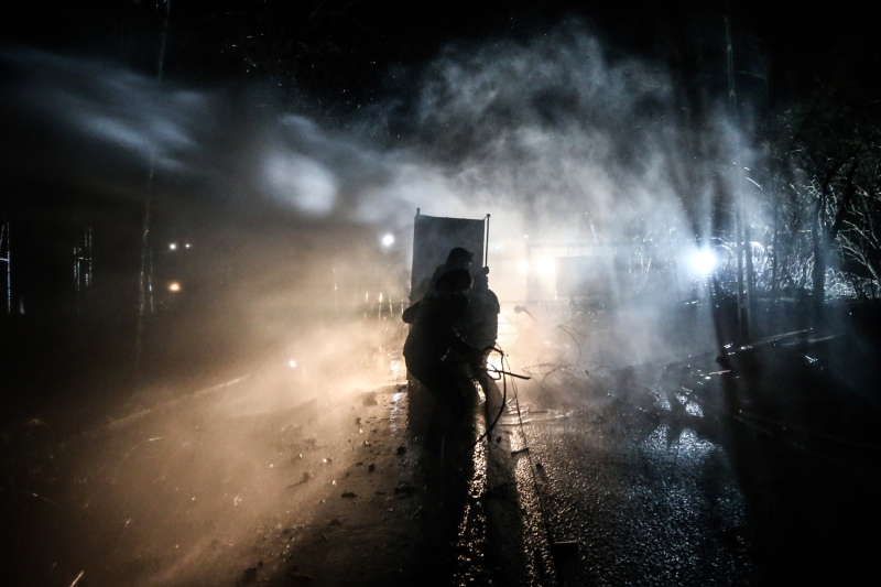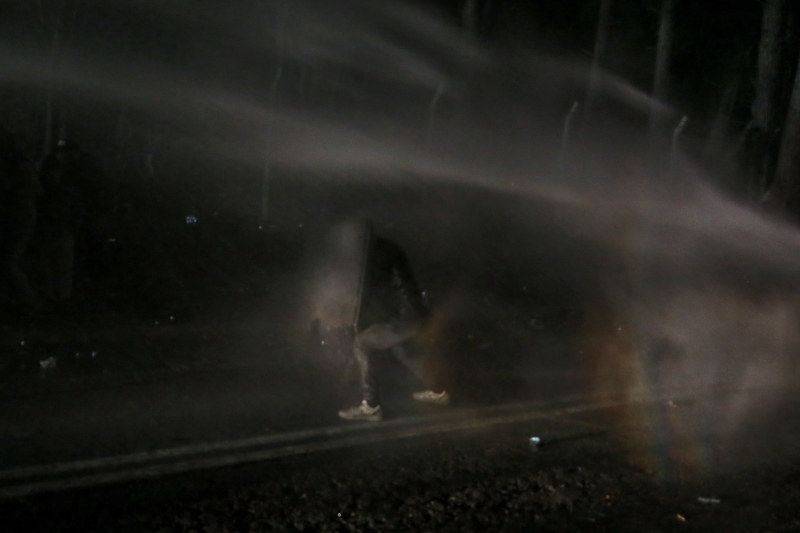 TOMA'dan tazyikli su sıkan Yunan güvenlik güçleri ayrıca gaz bombası da kullandı.