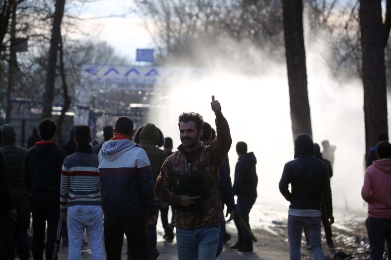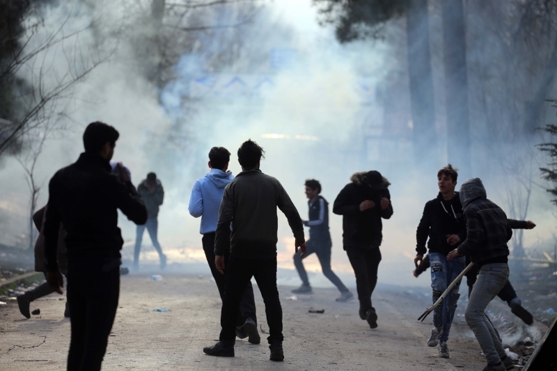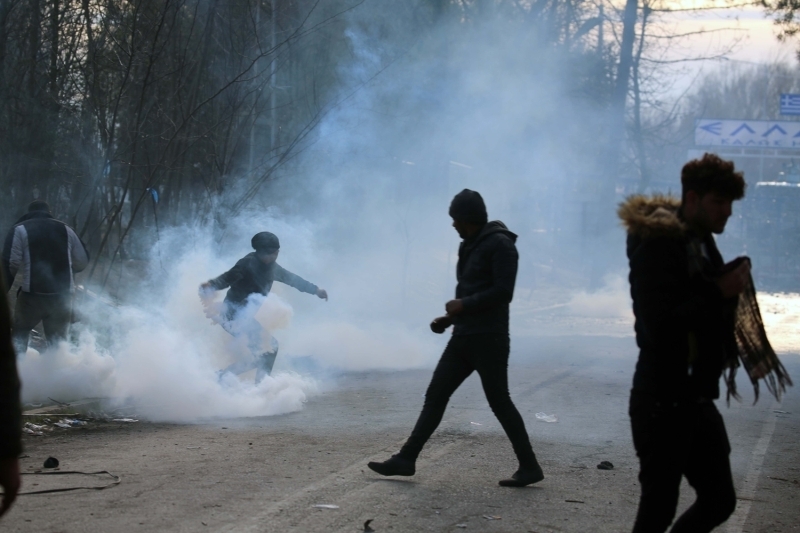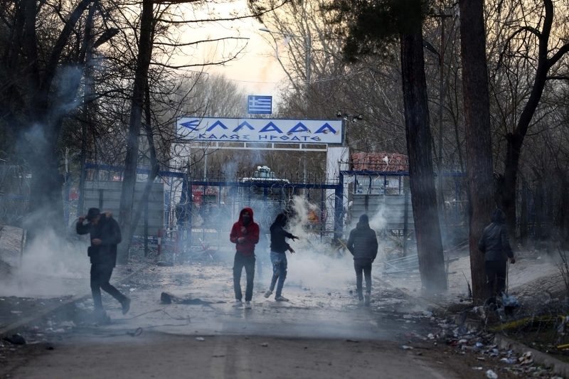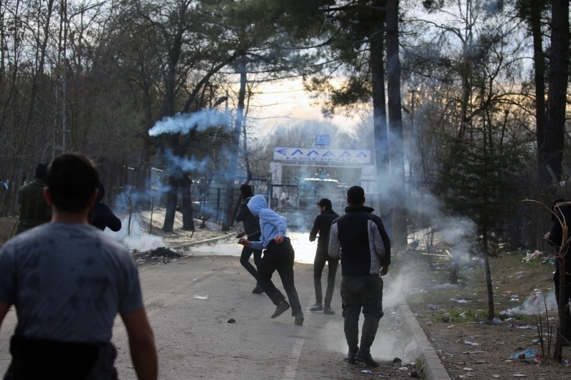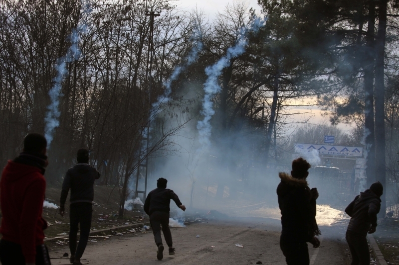 Yunanistan güvenlik güçleri, sınırda bekleyen düzensiz göçmenlere göz yaşartıcı bomba ile yoğun şekilde müdahale etti.