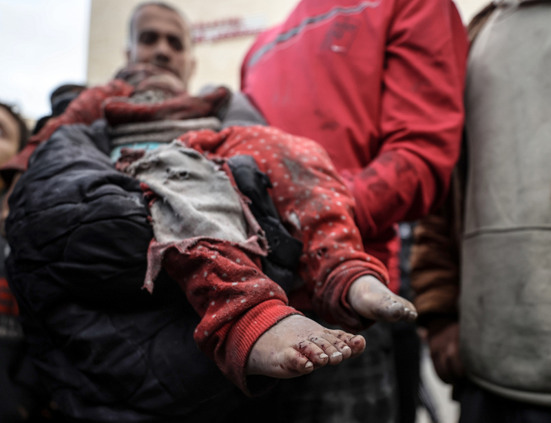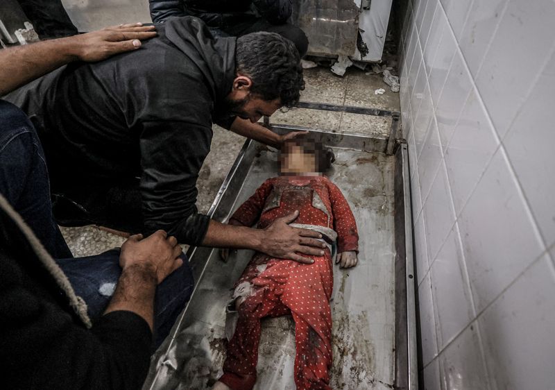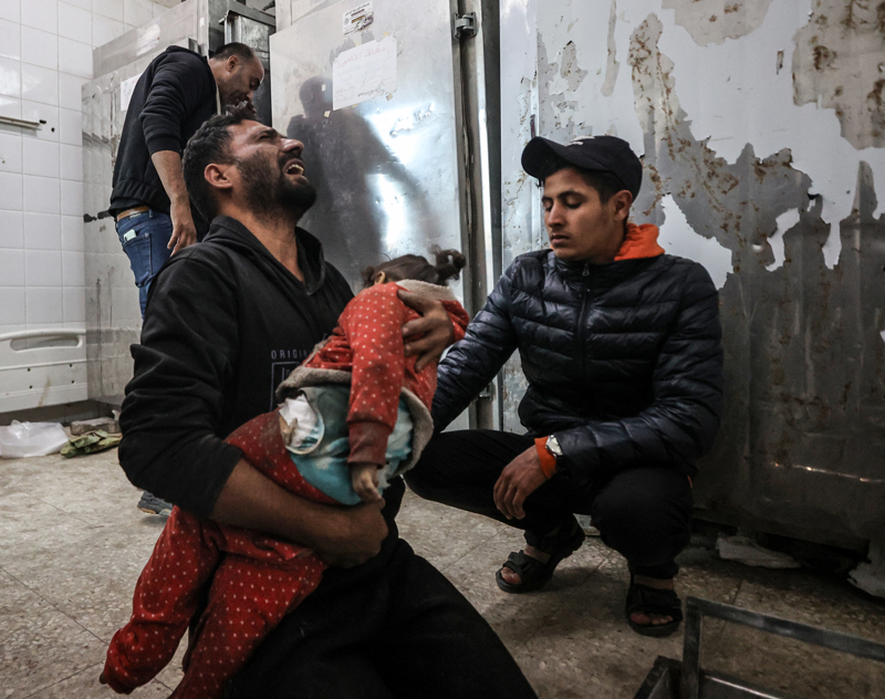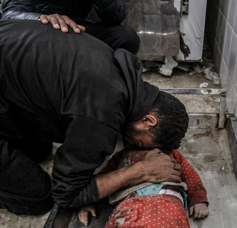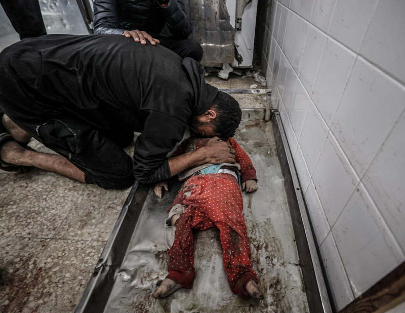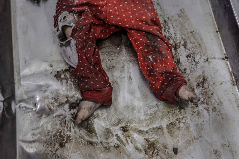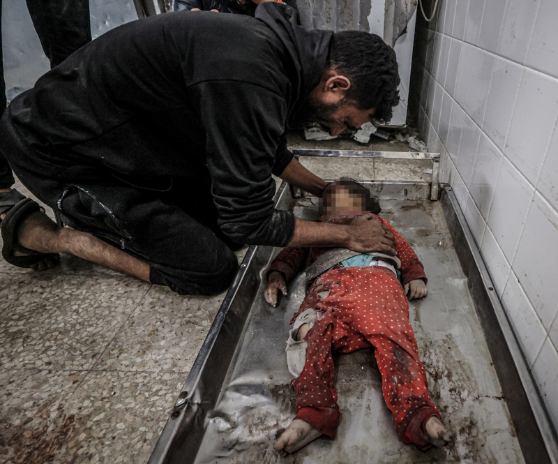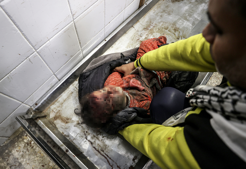 İsrail ordusunun abluka altındaki Gazze Şeridi'ne yönelik havadan, denizden ve karadan düzenlediği saldırılar devam ediyor. İsrail saldırısı sonucu hayatını kaybeden 3 yaşındaki Sabreen Ebu Helwa'nın naaşı, Deyr Balah kentindeki Aksa Şehitleri Hastanesi'ne getirildi. Ebu Helwa'nın babası, İsrail'in katlettiği kızına son kez sarıldı.
