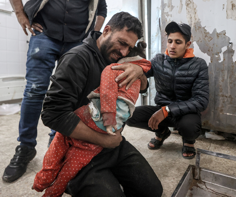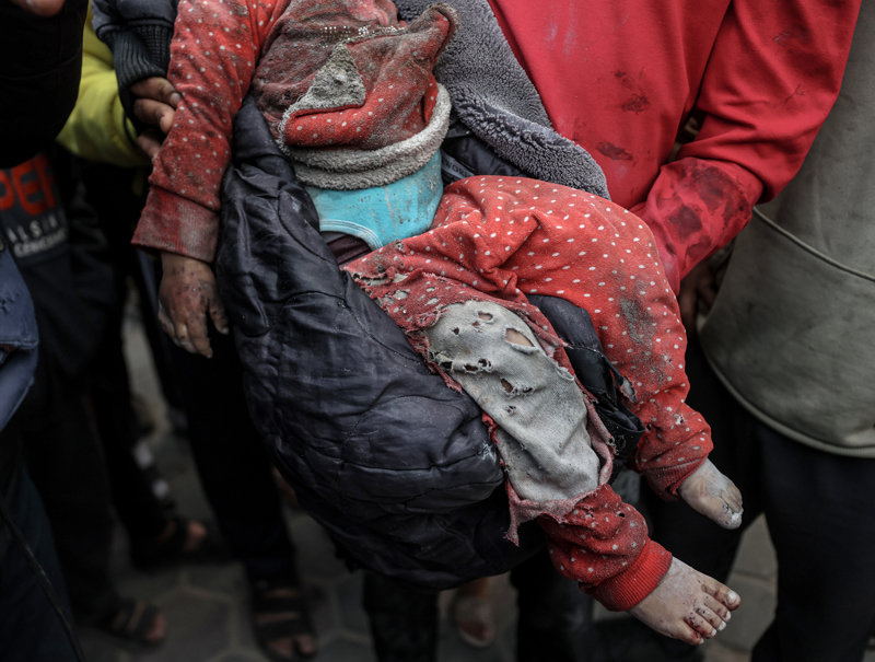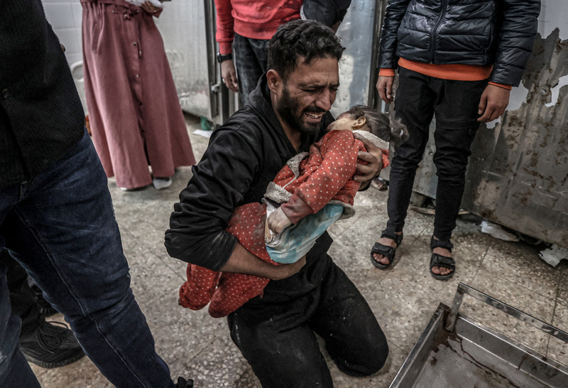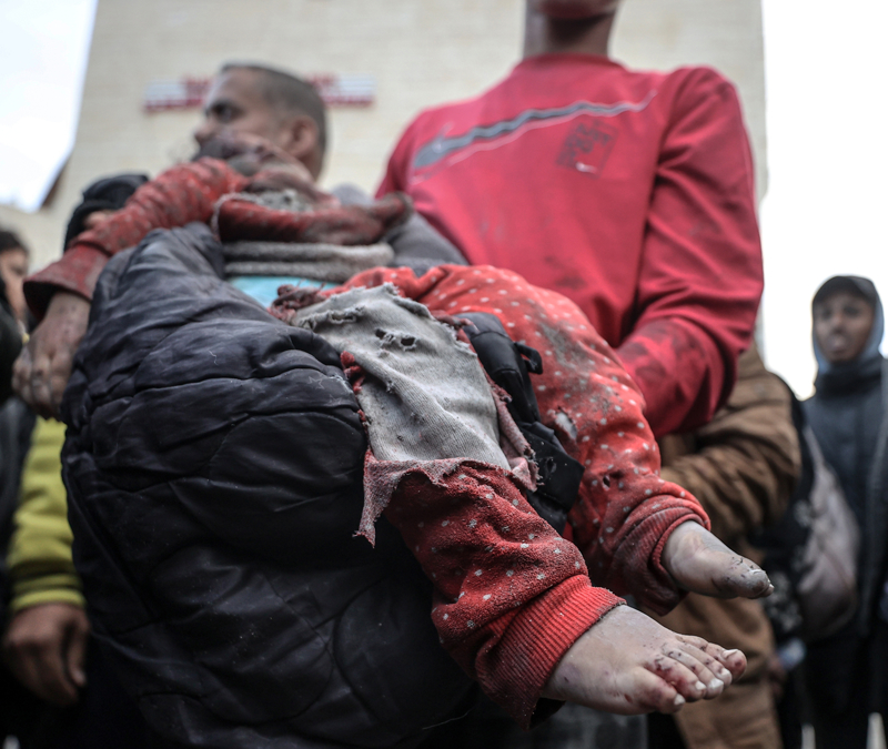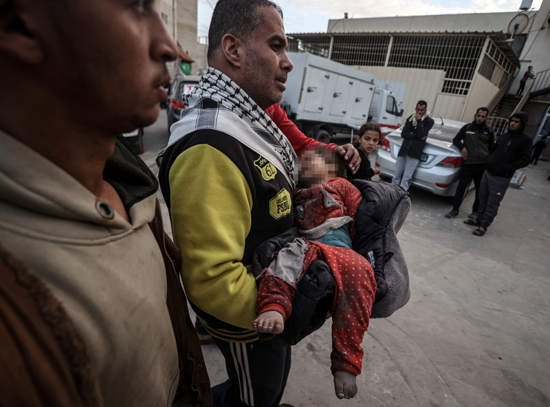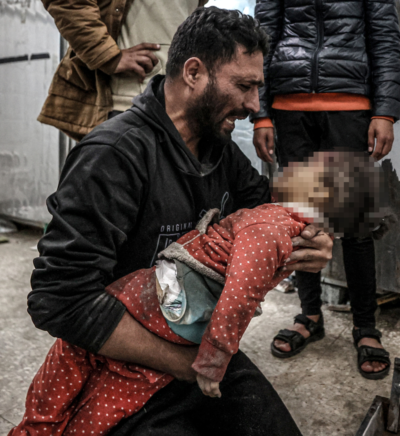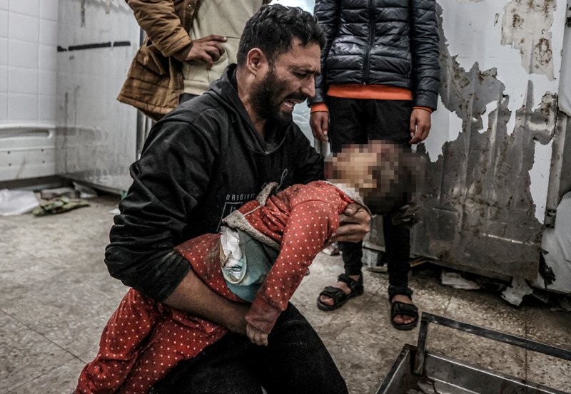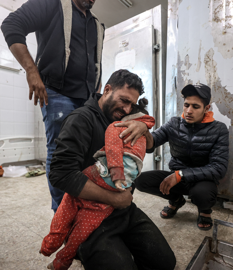 İsrail ordusunun abluka altındaki Gazze Şeridi'ne yönelik havadan, denizden ve karadan düzenlediği saldırılar devam ediyor. İsrail saldırısı sonucu hayatını kaybeden 3 yaşındaki Sabreen Ebu Helwa'nın naaşı, Deyr Balah kentindeki Aksa Şehitleri Hastanesi'ne getirildi. Ebu Helwa'nın babası, İsrail'in katlettiği kızına son kez sarıldı.