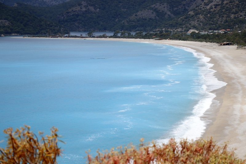 Fethiye ilçesindeki dünyaca ünlü Ölüdeniz sahilinde sessizlik hakim oldu.