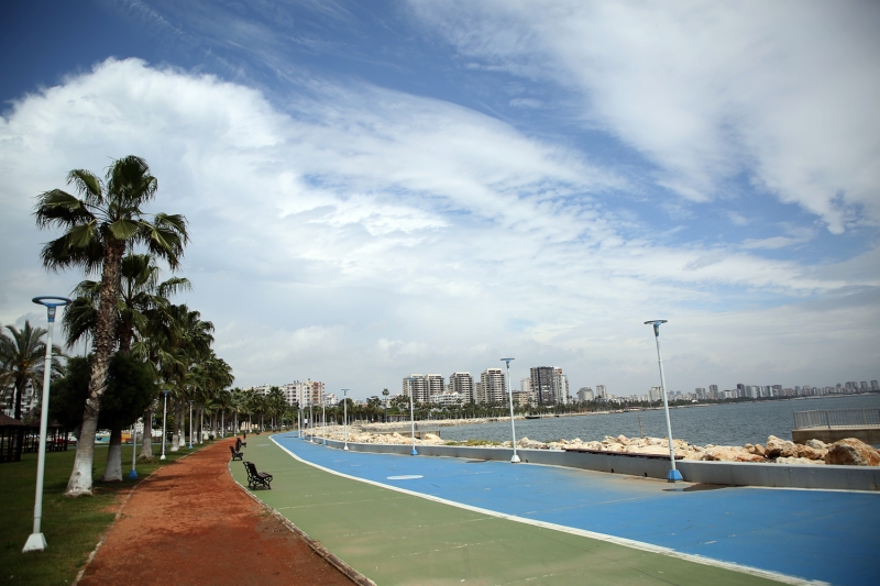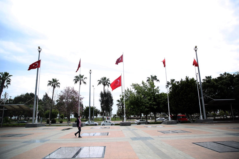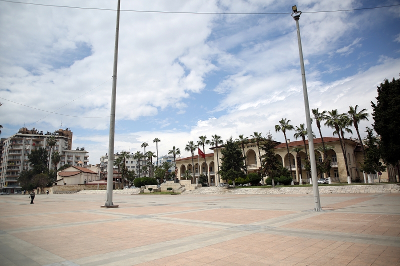 Mersin'in işlek alanlarından olan Cumhuriyet Meydanının boş kaldığı gözlendi.