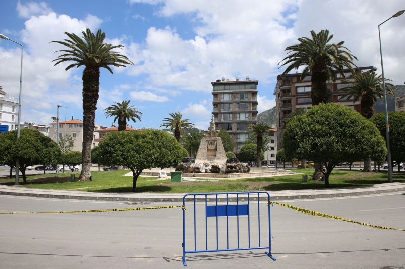 Marmaris ilçesinin en kalabalık yerlerinden Atatürk Meydanı, 19 Mayıs Gençlik Meydanı, tüm cadde ve sokaklarda sakinlik hakim oldu.