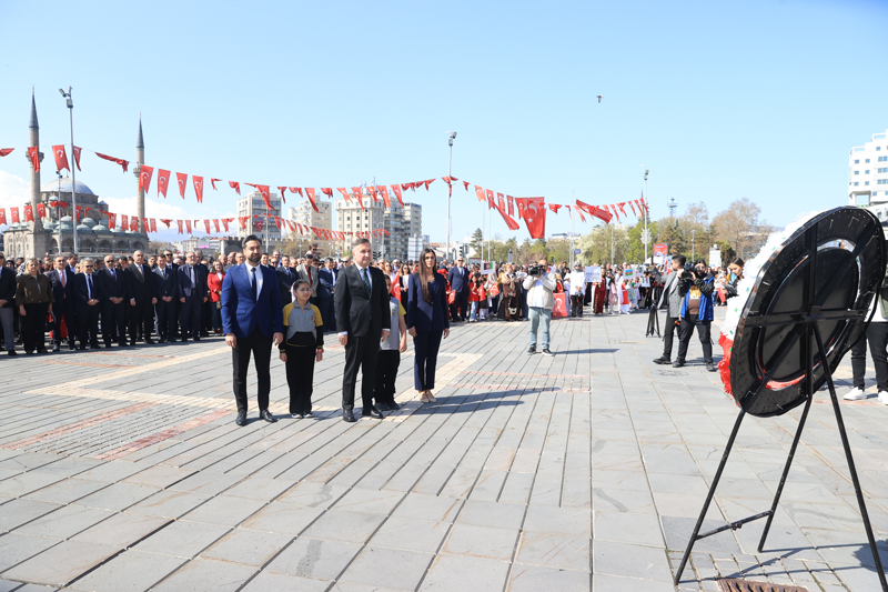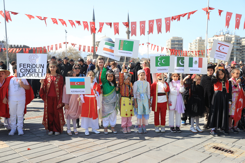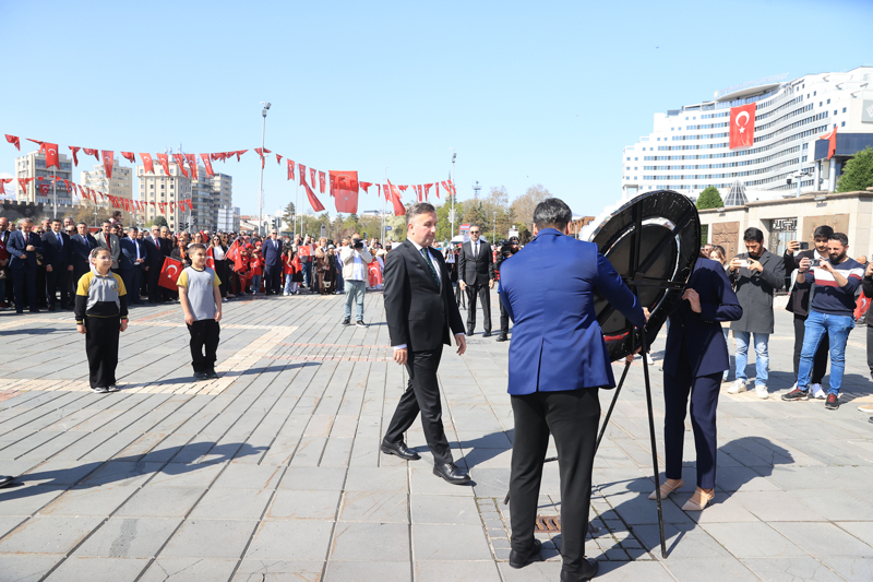 Kayseri'de 23 Nisan Ulusal Egemenlik ve Çocuk Bayramı dolayısıyla tören düzenlendi. Kayseri Cumhuriyet Meydanı'ndaki törene katılan öğrenciler farklı ülkelerin çocuklarıyla bayram coşkusunu yaşadı.