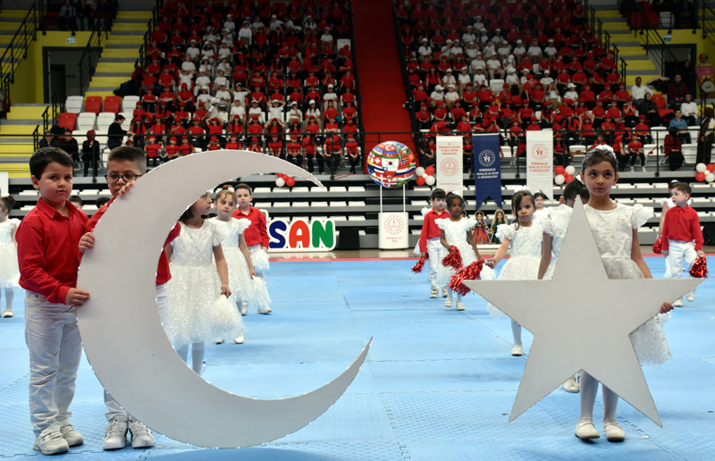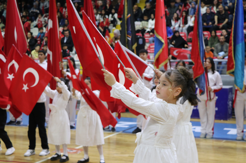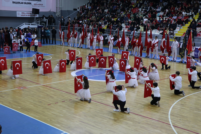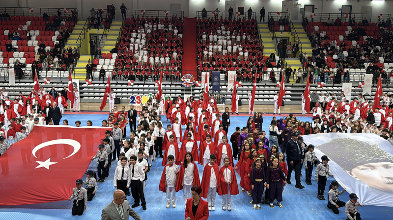 Yozgat'ta, 23 Nisan Ulusal Egemenlik ve Çocuk Bayramı ile TBMM'nin açılışının 106. yıl dönümü dolayısıyla Rıza Kayaalp Spor Salonu'nda tören düzenlendi.