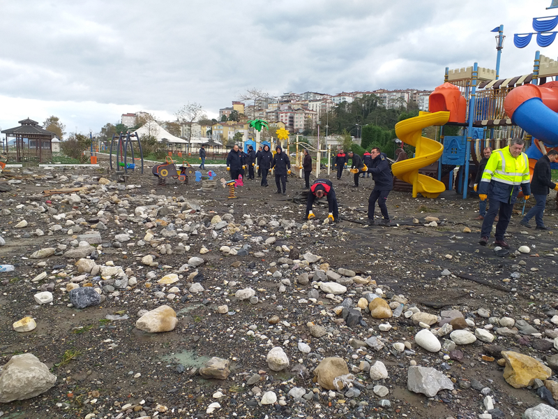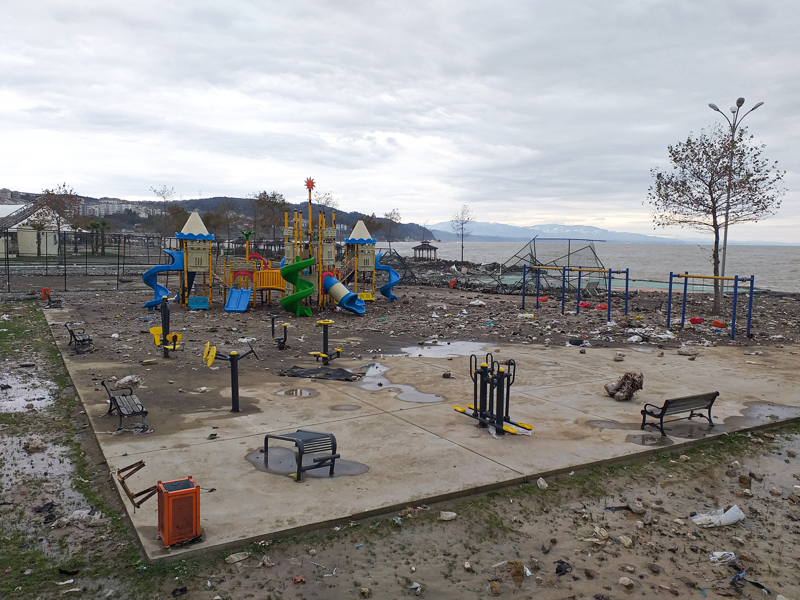 Sahil Aile Parkı, fırtına ve sağanak nedeniyle büyük zarar gördü. Yüksek dalgalar, tahkimat ve istinat duvarlarını yıktı, parkın içi taş ve kaya parçalarıyla doldu.