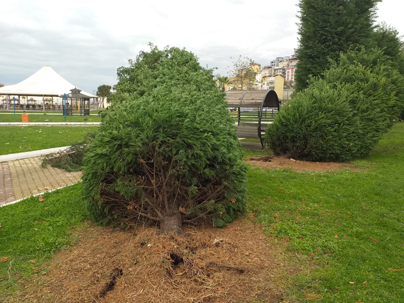 - ALAPLI'DA SAHİLDEKİ PARK TAŞ VE KAYA PARÇALARIYLA DOLDU