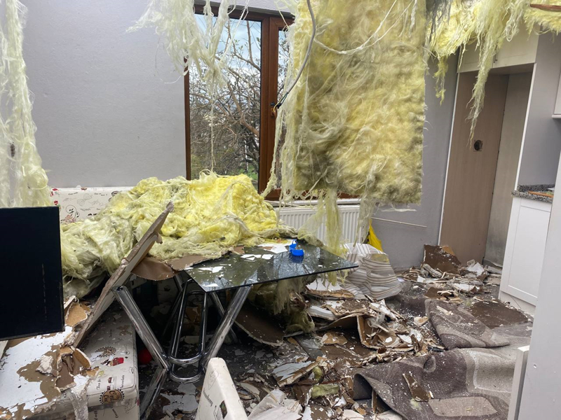 Aynı mahallede Çiçek Sokak'ta bir evin çatısı, yağmur ve fırtınaya dayanamayarak dairenin içine çöktü. Olayda can kaybı yaşanmazken, evdeki eşyalardan bazıları kullanılamaz hale geldi.