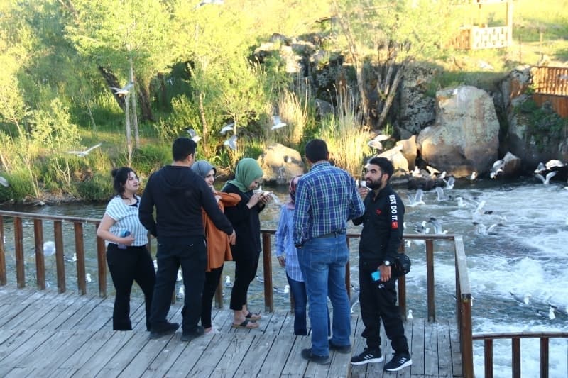 Uzun süre evden çıkamayan aileler, Erciş ilçesindeki Deli Çay ve Muradiye ilçesindeki Bendimahi Çayı üzerine oluşturulan alanlara gelerek, binlerce inci kefalinin yolculuğunu izledi.