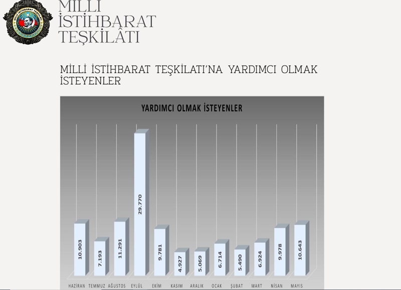 Milli İstihbarat Teşkilatı'na (MİT) çeşitli konularda yardımcı olmak için geçen yıl haziran ayından itibaren 1 yıllık süreçte 118 bin 683 kişi başvurdu.