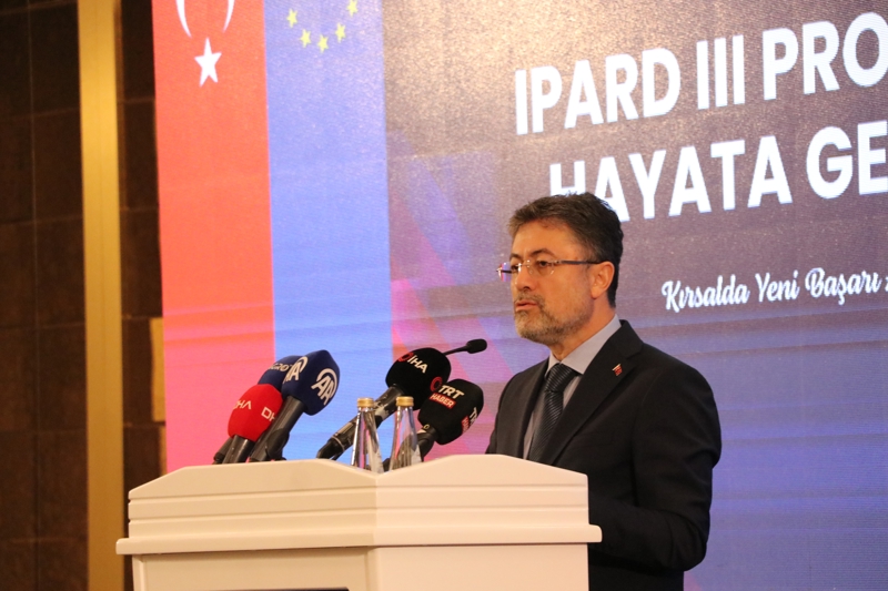 Tarım ve Orman Bakanı İbrahim Yumaklı, Avrupa Birliği ve Türkiye tarafından ortak finanse edilen ve Ankara'daki bir otelde düzenlenen 'IPARD III Projeleri Hayata Geçiyor Programı'na katıldı. Burada konuşan Yumaklı, kırsal kalkınmanın önemine değinerek, "İklim değişikliği, salgın hastalıklar, savaşlar, nüfus artışı gibi birçok faktör tüm sektörleri etkilediği gibi tarım sektörünü de çok derinden etkiledi. 2050 yılına kadar dünya ve ülke nüfusumuz yüzde 25 artacak. Bu nüfusun ihtiyacını karşılamak için yüzde 70 daha fazla gıdaya ve bu gıdayı üretmek için yüzde 15 daha fazla suya ihtiyacımız olacak. Bunu karşılamak sürdürülebilir tarım tekniklerinin geliştirilmesi ve kırsal kalkınmanın tam manasıyla sağlanmasıyla olacak" dedi.