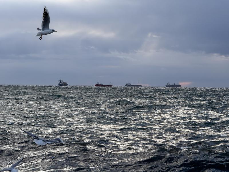 Hızı zaman zaman saatte 50 kilometreye ulaşan lodos nedeniyle yerli ve yabancı bandıralı 12 şilep ve tanker, Tekirdağ açıklarında demirlemek zorunda kaldı.