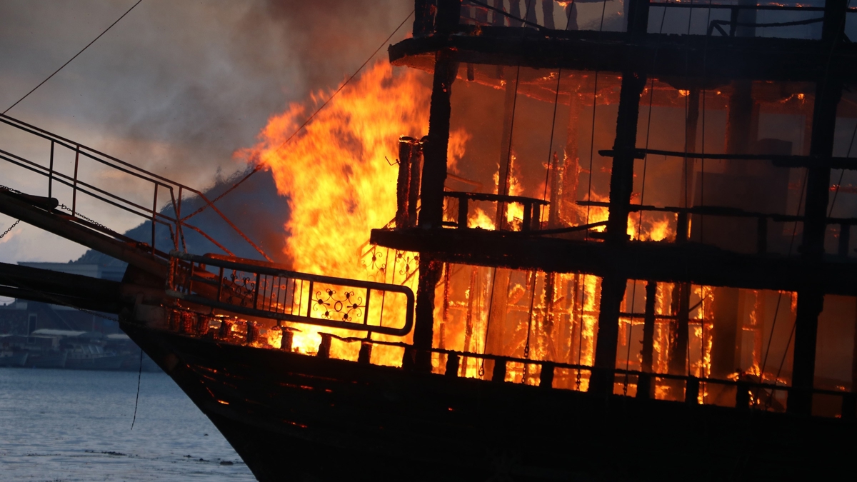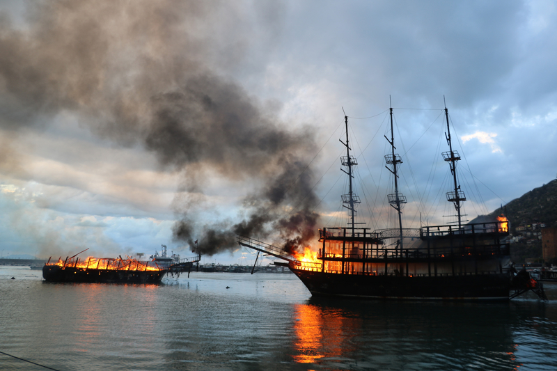 Alanya Balıkçı Barınağı'nda saat 06.30 sıralarında bir gezi teknesinde yangın çıktı. Kısa sürede büyüyen alevler, bitişikteki tekneye de sıçradı. 2 teknenin alevlere teslim olduğu yangına Antalya Büyükşehir Belediyesi ve Alanya Belediyesi'ne ait itfaiye ekipleri ile Alanya Sahil Güvenlik Bot Komutanlığı ekipleri müdahale etti. Bölgedeki bazı tekne sahipleri, teknelerini güvenli alanlara çekerek önlem aldı. Ekiplerin yoğun çabası sonucu yangın kontrol altına alındı. Yangında teknelerden biri tamamen yanarken, diğeri ise kullanılamaz hale geldi.