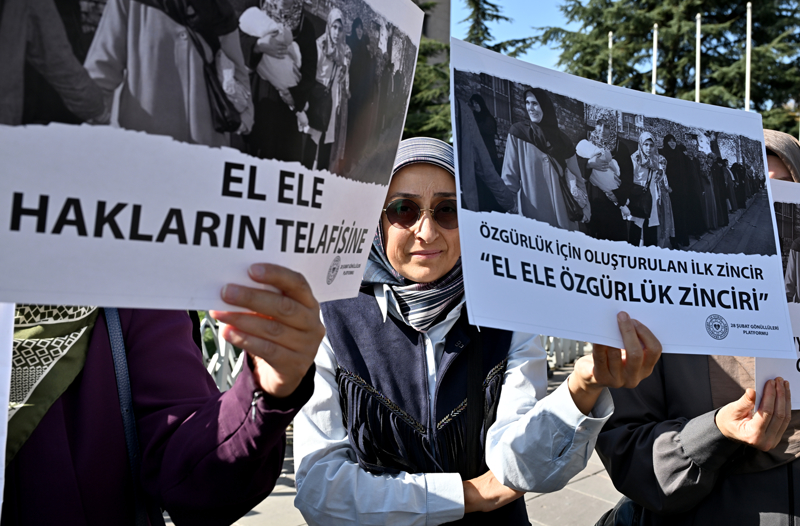 Ankara Adliyesi önünde toplanan, 28 Şubat Gönüllüleri Platformu üyeleri, "28 Şubatı unutmadık, unutturmayacağız", "Mazlumlar el ele haklarımız nerede" yazılı döviz ve pankartlar taşıdı.