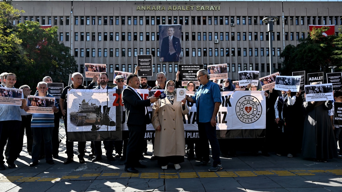 Ankara Adliyesi önünde toplanan, 28 Şubat Gönüllüleri Platformu üyeleri, "28 Şubatı unutmadık, unutturmayacağız", "Mazlumlar el ele haklarımız nerede" yazılı döviz ve pankartlar taşıdı.