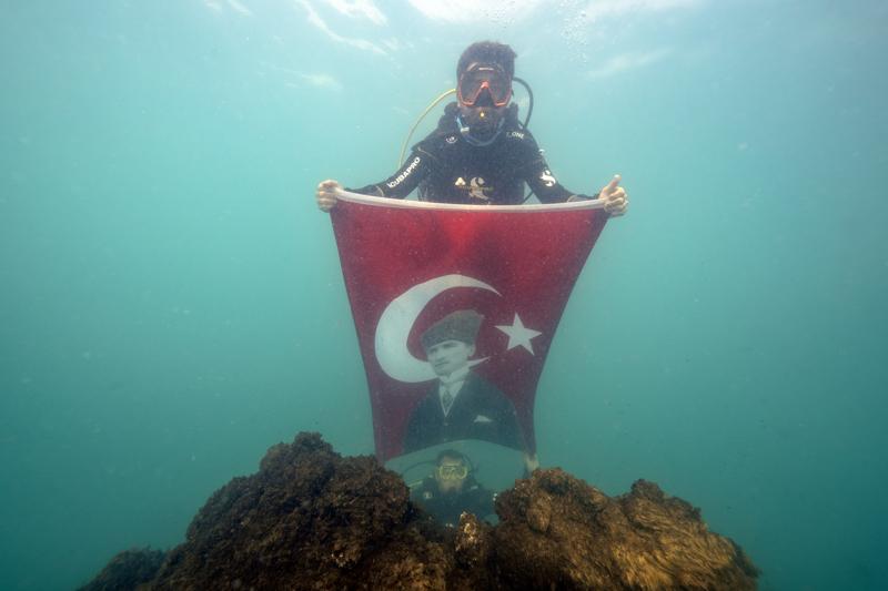 Ceylan ve ekibi, 29 Ekim Cumhuriyet Bayramı etkinlikleri kapsamında Van Gölü'nde dalış gerçekleştirdi.