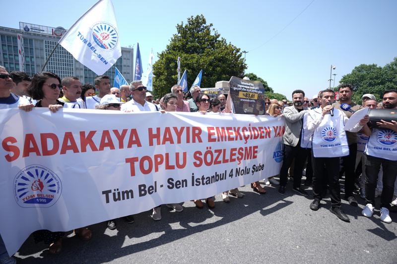 Türkoğlu, sosyal ve demokratik taleplerin müzakere dahi edilmediğini öne sürerek, "İşte size fırsat. Samimiyetinizi gösterin, yetkinizi kullanın. İSKİ, İETT, İBB çalışanı kamu emekçilerinin az da olsa yüzünü güldürün. Sendikasız demokrasi, toplu sözleşmesiz sendika olmaz. Önümüz bayram. Emekçiler, 3 aydır çıplak maaşla geçinmeye çalışıyor. Bu krizi çözün, bir an önce toplu sözleşmeyi imzalayın." ifadelerini kullandı.