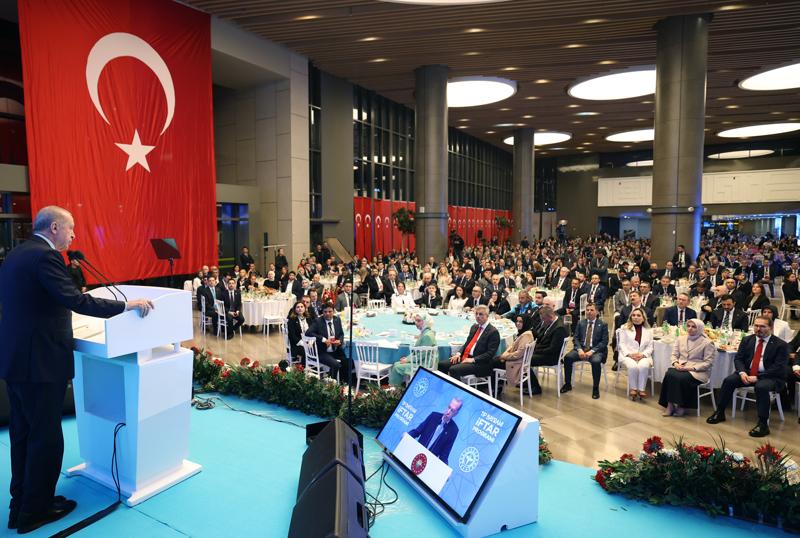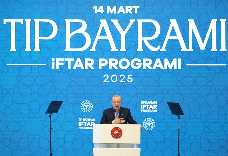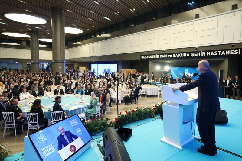 Cumhurbaşkanı Erdoğan, 14 Mart Tıp Bayramı dolayısıyla Başakşehir Çam ve Sakura Şehir Hastanesi'nde sağlık çalışanlarıyla bir araya geldiği iftar programında yaptığı konuşmada, sofralarını sağlık çalışanlarıyla paylaşmanın memnuniyeti içerisinde olduğunu söyledi.