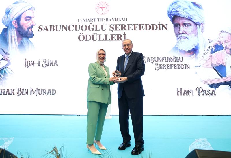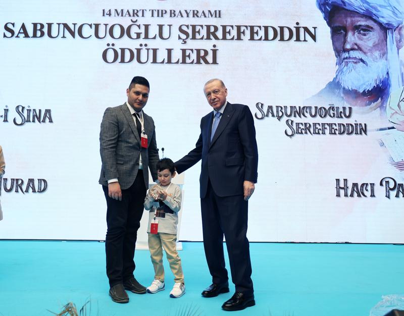 Konuşmaların ardından 14 Mart Tıp Bayramı kapsamında düzenlenen Sabuncuoğlu Şerefeddin Ödülleri törenine geçildi. Törende, ödülleri Cumhurbaşkanı Erdoğan takdim etti.