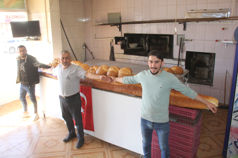 Şehitler Mahallesi'nde fırın işleten ve 2015 yılında da 1 metre 90 santimetre uzunluğunda ekmek yapan 50 yaşındaki Erdoğan Çiçek, kısa süre önce 3 metre 80 santimetre uzunluğunda ekmek üretti.