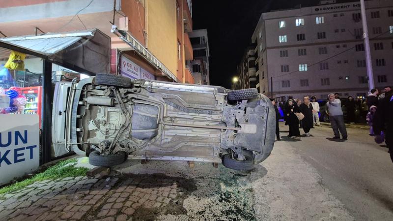 Savrulan araç daha sonra park halindeki 2 araca daha çarparak devrildi.