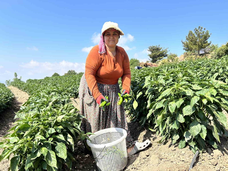 Asrın felaketinin yaralarının sarıldığı Hatay'ın bereketli topraklarında çiftçiler toprakla buluşturdukları tohumların hasadına devam ediyor. Türkiye'de acı severlerin afiyetle tükettiği Samandağ biberinde de hasat mevsimi geldi. Arsuz ilçesinde kavurucu sıcakta zorlu şartlarda hasat edilen biber tarladan 20 TL ile 25 TL arasında alıcı buluyor. Zorlu hasatta litrelerce su tüketerek çalışan işçilerin yevmiyesi ise 800 TL.