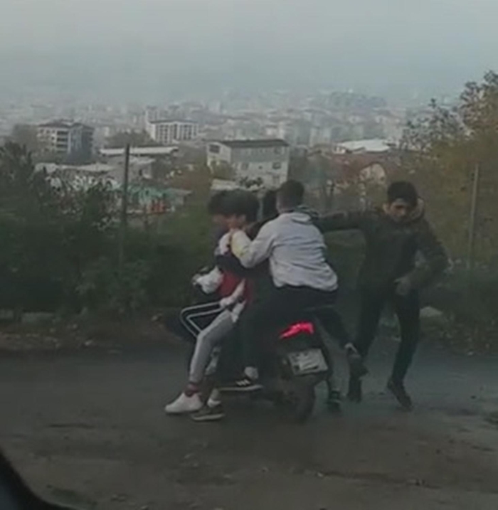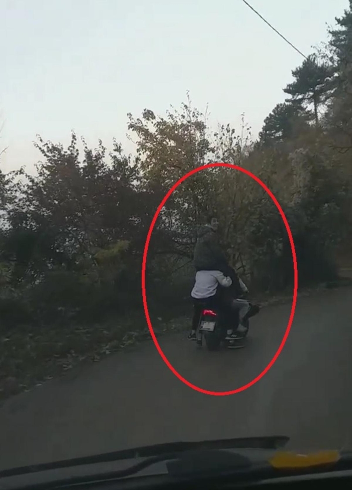 Bursa’da merkez Yıldırım ilçesi, Fidyekızık Mahallesi’ndeki Uludağ yolunda, 4 genç motosiklet üzerinde birbiri ardına sıralanmış şekilde, diğer genç de motosikletteki arkadaşının omuzlarına çıkmış bir şekilde seyretti. Canlarını hiçe sayan gençlerin, tehlikeli yolculukları bir sürücü tarafından kaydedildi. Yolda tehlikeli bir şekilde seyreden 5 genç, görüntülendiklerini anlayınca bir süre durdu. Arkadaşının omzundan atlayan genç, kendilerini çeken kişiyi durdurup yanına gelerek, videoyu kendi cep telefonu numarasına atmasını istedi. Vatandaşın "Haberlerde görürsün" demesinin ardından, gencin "Tamam ağabey, paylaş ama" demesi dikkat çekti.