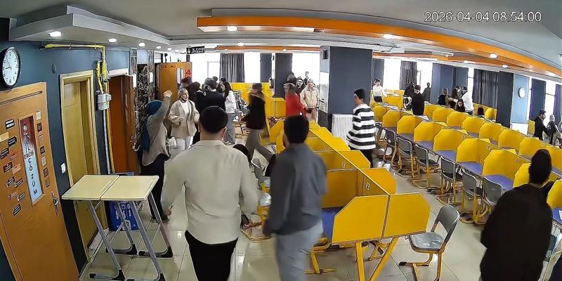 ÖĞRETMENLER BÜYÜK TAKDİR TOPLADIGüvenlik kamerasına yansıyan görüntülerde, öğretmenler soğukkanlılık göstererek öğrencilerini güvenli alana yönlendiriyor. Deprem anında öğretmenlerin düşündüğü tek şey onlara emanet edilen canları kurtarmak için verdikleri mücadele ise büyük takdir topladı.