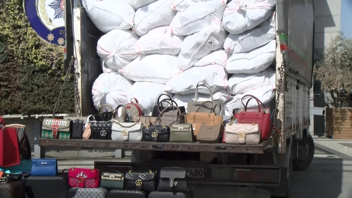 Dünyaca ünlü markaların sahte çanta, valiz, ayakkabı, mont ve güneş gözlüklerine el konulurken, operasyonda 2 kişi gözaltına alındı.
