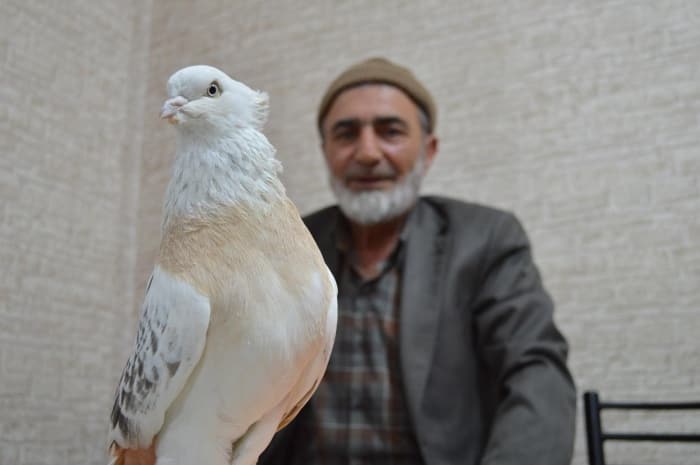 Elazığ'da komşusunun verdiği güvercinle kuş sevgisi başlayan Mustafa Turgut'un, kuşlara olan ilgisi 62 yıldır sürüyor. Yarım asırdan uzun süredir güvercin besleyen 3 çocuk babası Turgut, kuşlara olan ilgisinin 8 yaşında başladığını söyledi. Birçok kuş türü beslediğini anlatan Turgut, Türkiye'de sayısı 10 dolayında olan 'Miski' türü güvercinine sahip olduğunu söyledi.
