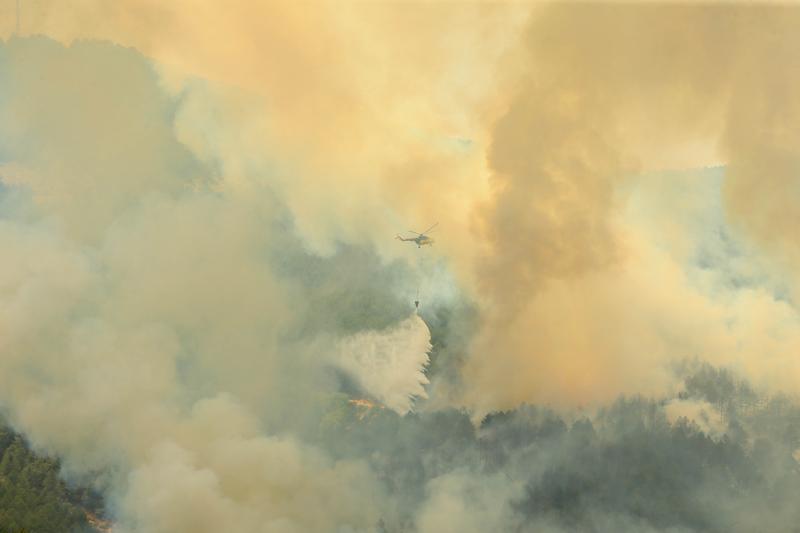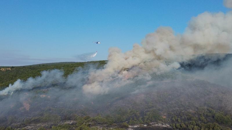 Ekipler, havadan ve karadan müdahaleyle yangını kontrol altına almaya çalışıyor.