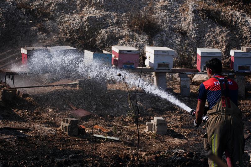 Yangında bölgedeki bazı arı kovanları ile bir iş yeri zarar gördü.