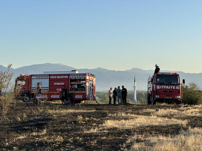 Konuralp bölgesi Tepecik Mahallesi kırsalında otluk alanda henüz belirlenemeyen nedenle örtü yangını çıktı.