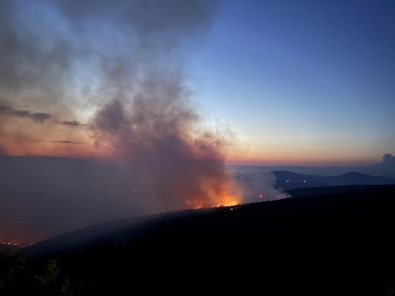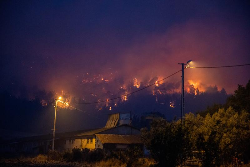 Alevler, rüzgarın etkisiyle ağaçların bulunduğu eğimli araziye sıçradı.