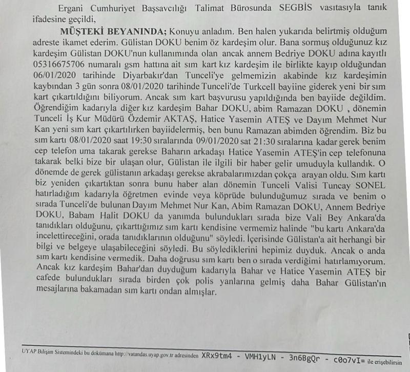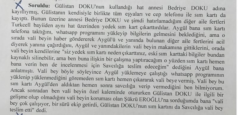 En çarpıcı gelişmelerden birisi de Gülistan Doku'ya ait sim kart üzerinden yapılan incelemeler oldu. Gülistan Doku'ya ait ele geçirilemeyen telefon ve sim kart, ailesi tarafından yeniden çıkartılmışken, valilik tarafından aileden talep edilerek alındığı, ancak soruşturma makamlarına teslim edilmediği ve Gülistan Doku'nun hesaplarına girilerek müdahalede bulunulduğuna dair oldukça ayrıntılı detaylar tespit edildi.